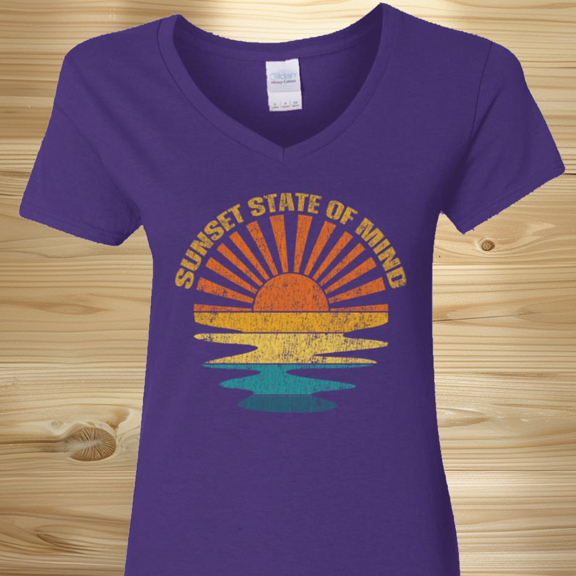 Ladies Distressed Retro Sunset State Of Mind Tee